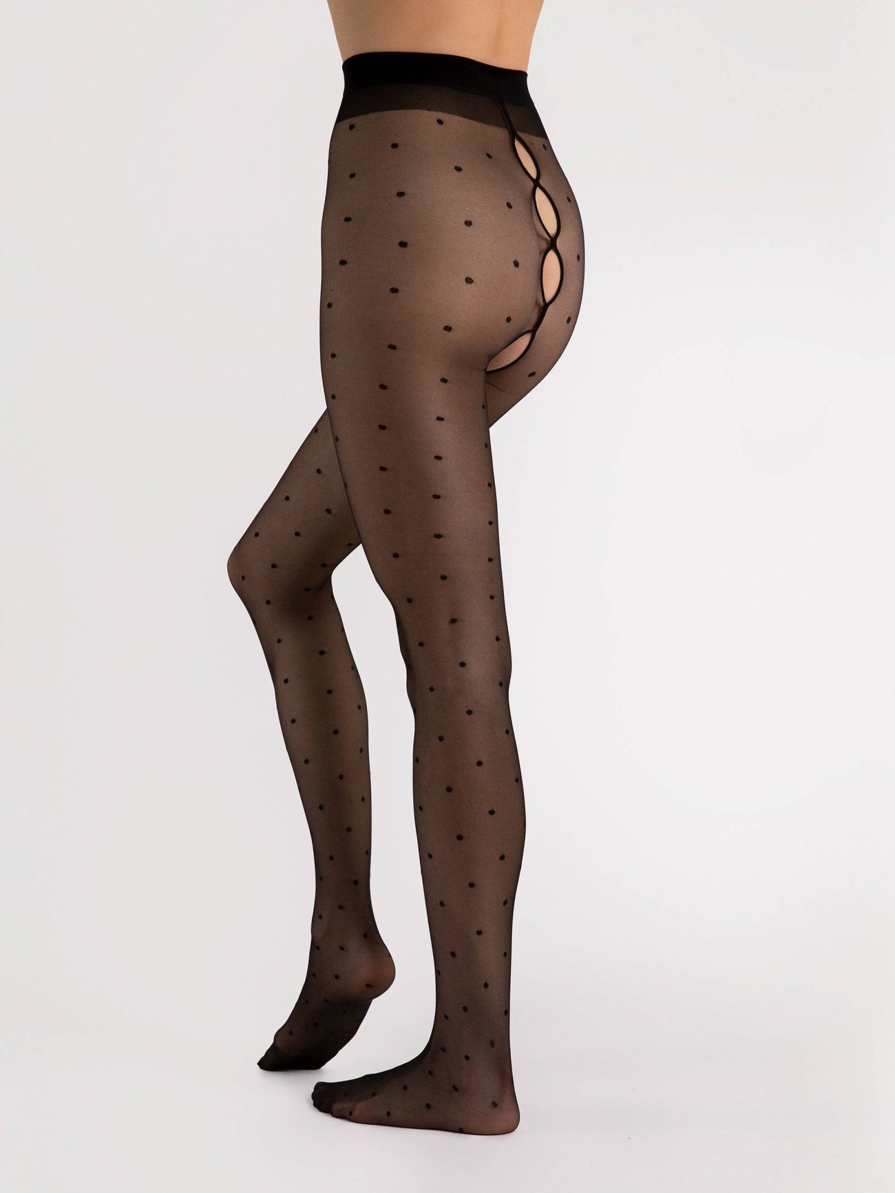 Dream boldly and embrace real passion. These seductive tights decorated with tear-like dots accentuate the buttocks, thus inspiring you to be open, sensually bold and aware of your own awakening strength. This model, which comes in black or the fashionable shade of off-white, inspires fantasy and experimentation.