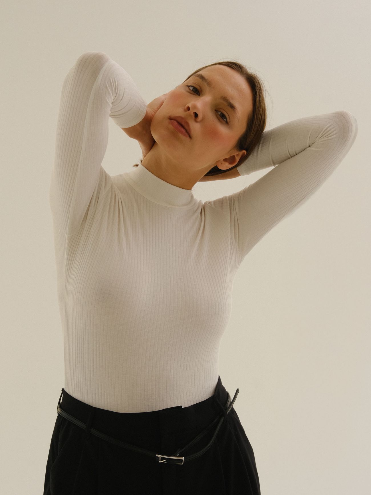 Bodysuit with a Fitted Cut and High Neckline, Made from Delicate Striped Viscose. This piece is perfect for casual wear paired with jeans, as well as a base for more elegant outfits. The body is available in classic black and white colour.