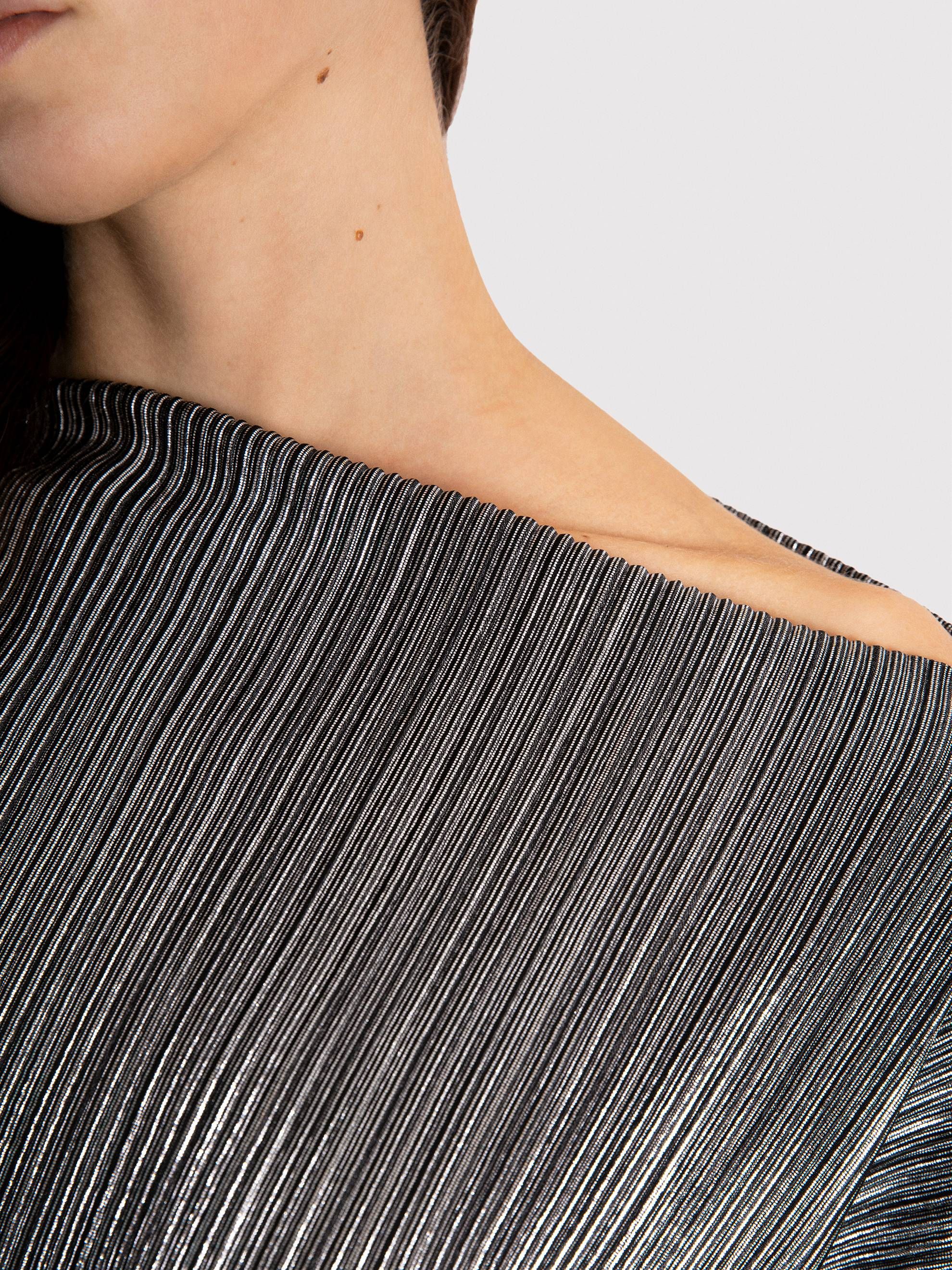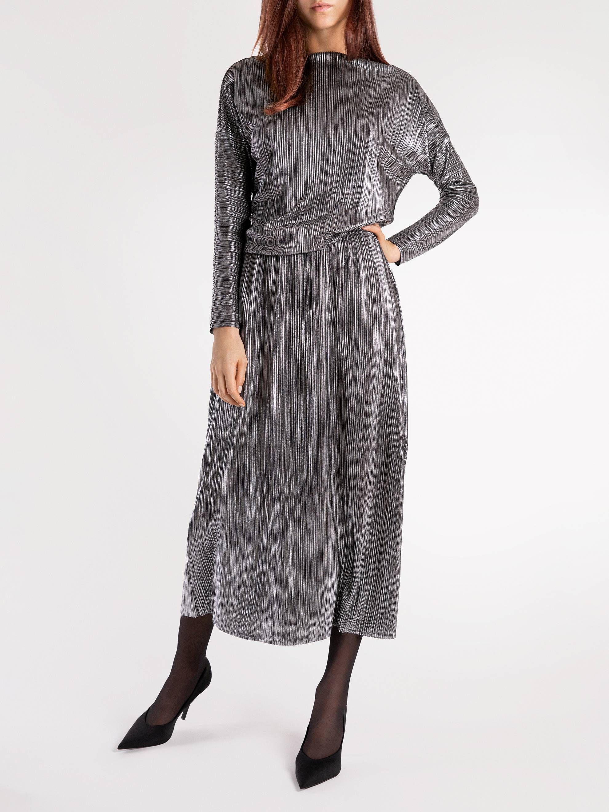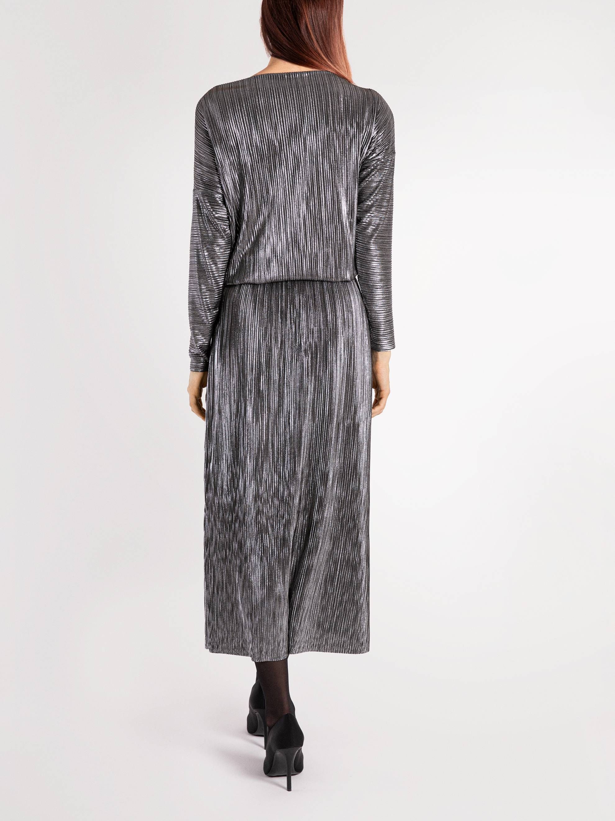 This dress is subtle and dynamic at the same time. It envelops your body like a wave, moving beautifully along with you like liquid quicksilver. It has long narrowing sleeves, a boat neck to accentuate the shoulder and neckline, and a comfortable elastic waistband and high-quality lining from the waist down.