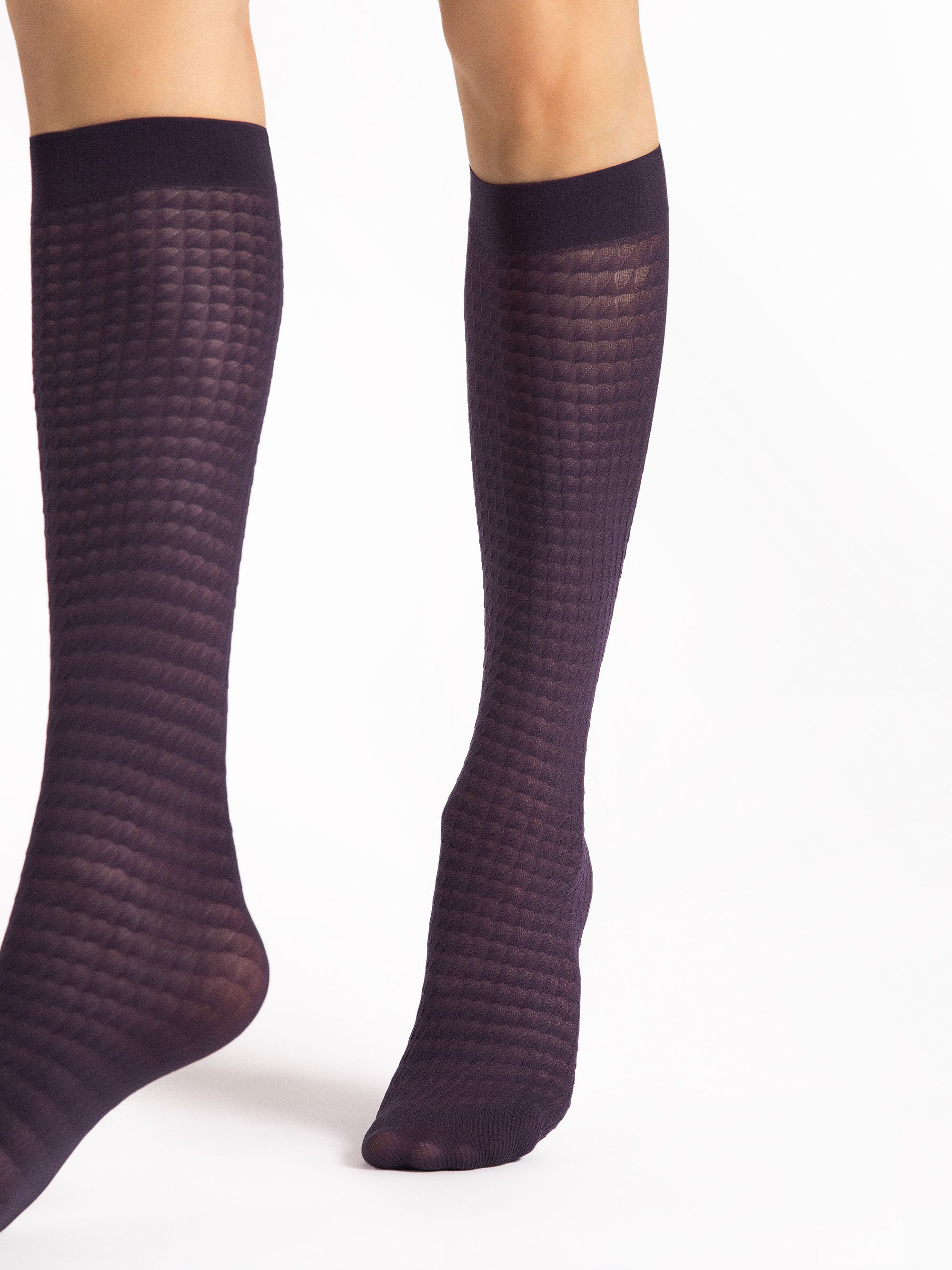 TWILLA knee-highs are made to be seen. With their textured pattern and elegant length, they look perfect in ankle-baring outfits – pair them with loafers, ballet flats or even heels. Understated but full of character. Ideal for transitional weather when style and comfort both matter.