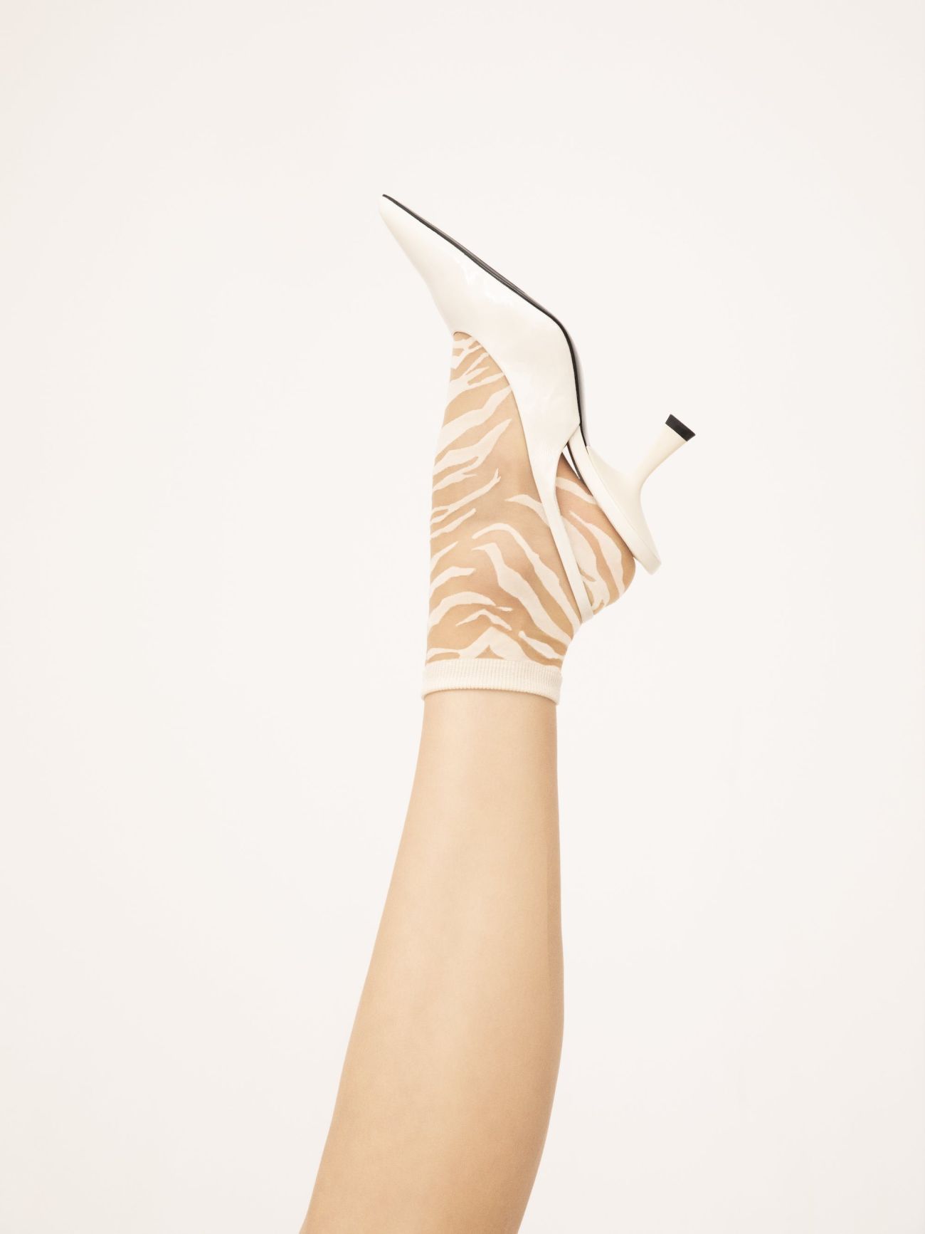If you have a challenge ahead of you, these socks will awaken your wild heart and irrepressible freedom. Give yourself a boost and choose a sock model in tiger print, with high heels or trainers, always on your own terms!