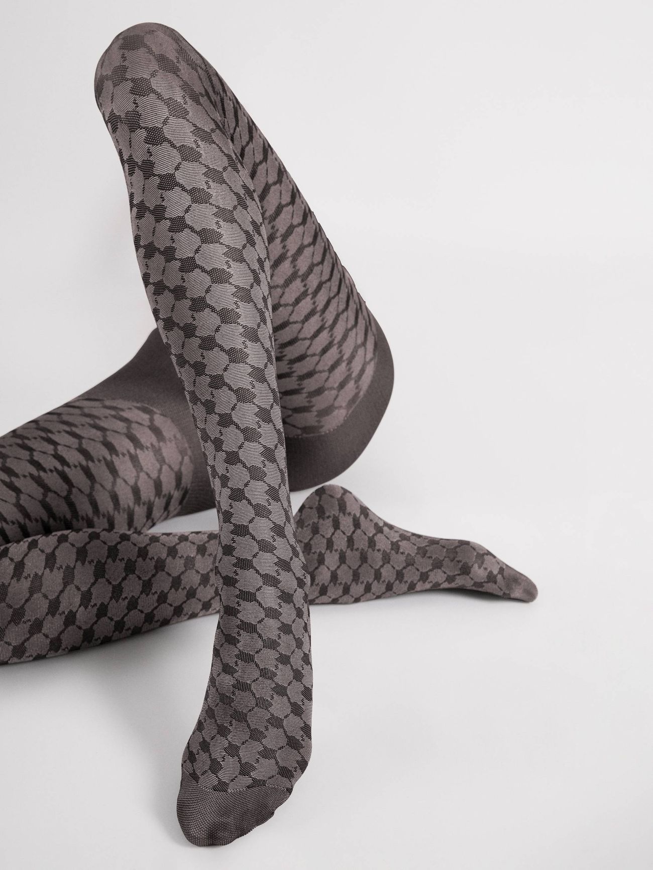 W centrum uwagi mamy tu ponadczasowy wzór w pepitkę w wersji odważnie wyskalowanej i stonowanej eleganckim, szarym, i zarazem błyszczącym tłem. Wzór tworzy iluzję głębi i wymiaru. W połączeniu z szykowną wełnianą sukienką, czarną spódnicą, czy nawet szytym na miarę garniturem, te rajstopy dodadzą Twoim nogom wyrafinowania, co czyni je stylowym wyborem zarówno na oficjalne okazje, jak i na niezobowiązujące wyjścia.