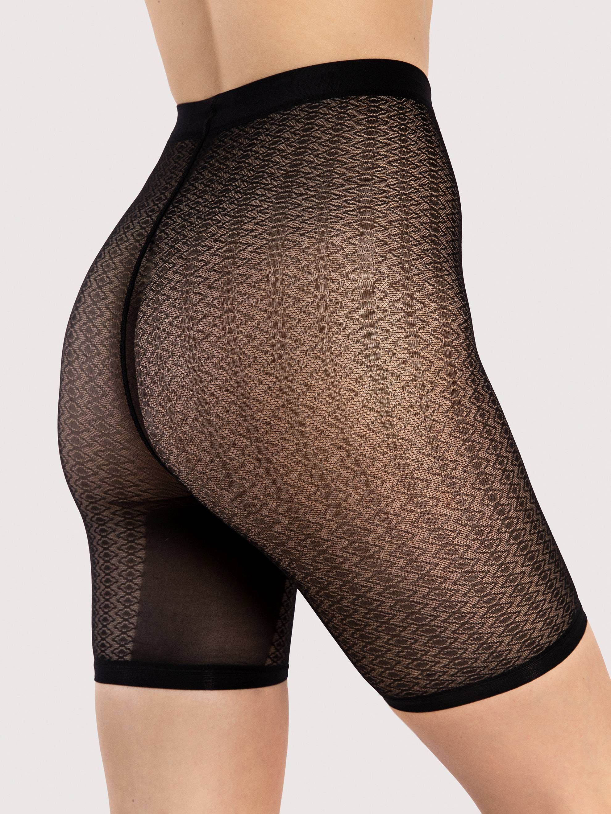 Szorty fashion w stylu klasycznym, w regularne, zygzakowate prążki w czerni lub w wersji nude. Ten model to powrót trendu na kolarki! Dziś wracają pod nazwą „biker shorts” – szorty do jazdy na rowerze lub do inspirujących, miejskich stylizacji. Znakomicie przeciwdziałają otarciom ud w upały. Nosimy je z króciutkimi szortami lub minispódniczką na wierzch, a by uzyskać efekt sportowej elegancji dodajemy koszulę lub oversize’ową marynarkę. Wypróbuj jakie połączenia działają z nimi w Twojej szafie!