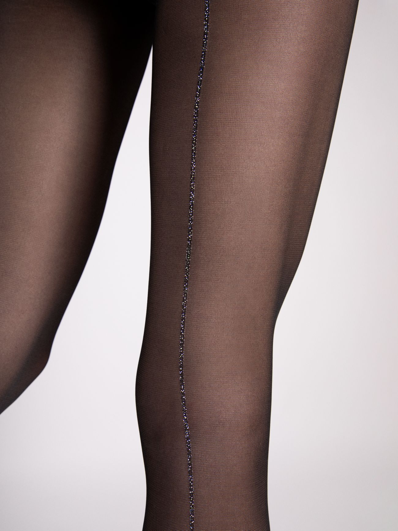 Gina to klasyka z błyskiem! Rajstopy z delikatnym szwem wykonanym z błyszczącej nitki lurexowej przyciągają wzrok i nadają sylwetce wyjątkowego charakteru. Ten zmysłowy detal biegnący wzdłuż nóg subtelnie wydłuża je i podkreśla ich linię. Idealne na wieczorne wyjścia i specjalne okazje – gdy chcesz dodać stylizacji nuty glamour.